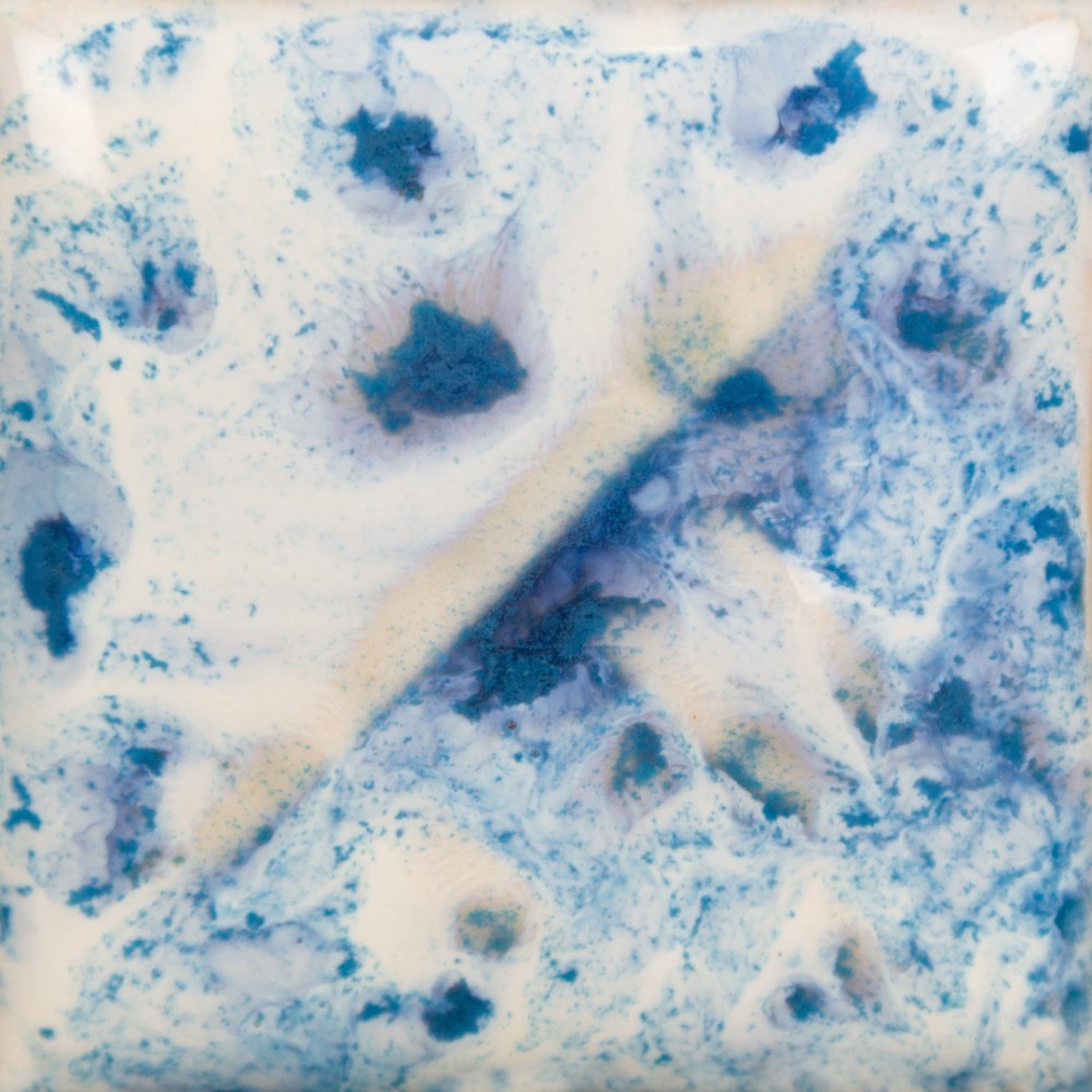 Tip: Tidal Wave uses SW223 Milk Glass as the base. Upon opening, crystals will be concentrated in the bottom of the bottle. Stir/shake thoroughly to incorporate before each use. Crystals can create movement. Avoid having a heavy concentration of crystals near the bottom of your piece. When storing a crystal glaze, you may consider storing upside down to make crystal more accessible.