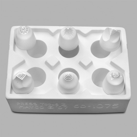 Press Tools add unique patterns and designs to clay surfaces.